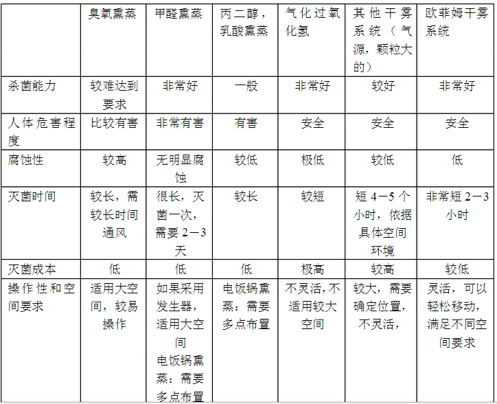 與其他幾種空間消毒方法比較,我們的方案可以對比如下