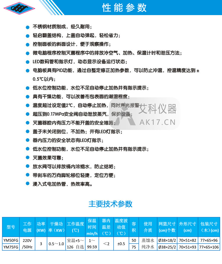 上海三申YM75FG不銹鋼立式電熱蒸汽滅菌器高壓滅菌鍋醫用消毒鍋75升說明